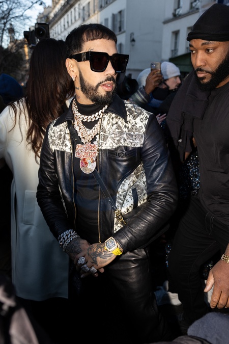 Anuel AA - Les célébrités à la sortie du défilé Amiri "Collection Prêt-à-Porter Automne/Hiver 2024-2025" lors de la Fashion Week de Paris (PFW), le 18 janvier 2023. © Jeremy Melloul / Bestimage Celebrities at the exit of the Amiri "Fall/Winter 2024-2025 Ready-to-Wear Collection” fashion show during Paris Fashion Week (PFW), January 18, 2023.