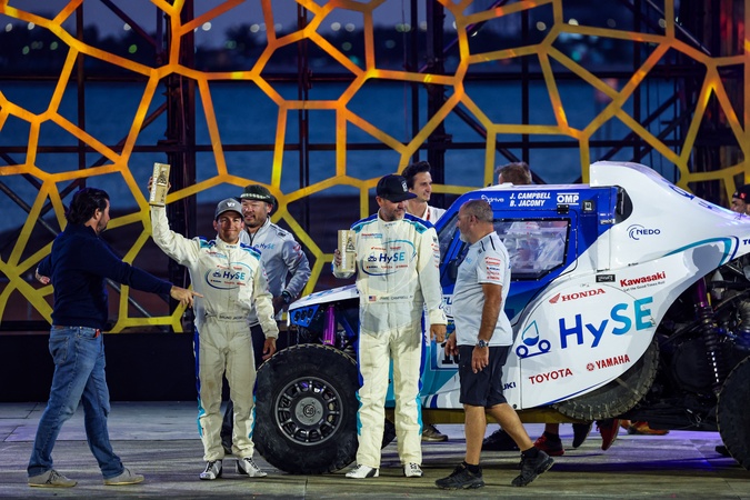 1020 HYSE, HYSE-X1, Dakar Future Mission 1000, - Cérémonie de remise des trophées à l'issue du Dakar 2024 à Yanbu (Arabie Saoudite), le 19 janvier 2024. L'Espagnol C.Sainz remporte le Dakar 2024 devant le Belge G.De Mevius et le Français S.Loeb. © Florent Gooden / Panoramic / Bestimage Trophy presentation ceremony at the end of the Dakar 2024 in Yanbu (Saudi Arabia), January 19, 2024. The Spaniard C.Sainz wins the Dakar 2024 ahead of the Belgian G.De Mevius and the Frenchman S.Loeb.