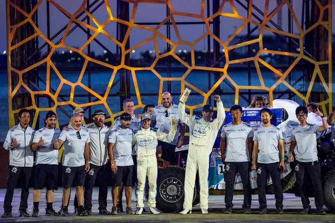 1020 HYSE, HYSE-X1, Dakar Future Mission 1000, - Cérémonie de remise des trophées à l'issue du Dakar 2024 à Yanbu (Arabie Saoudite), le 19 janvier 2024. L'Espagnol C.Sainz remporte le Dakar 2024 devant le Belge G.De Mevius et le Français S.Loeb. © Florent Gooden / Panoramic / Bestimage Trophy presentation ceremony at the end of the Dakar 2024 in Yanbu (Saudi Arabia), January 19, 2024. The Spaniard C.Sainz wins the Dakar 2024 ahead of the Belgian G.De Mevius and the Frenchman S.Loeb.