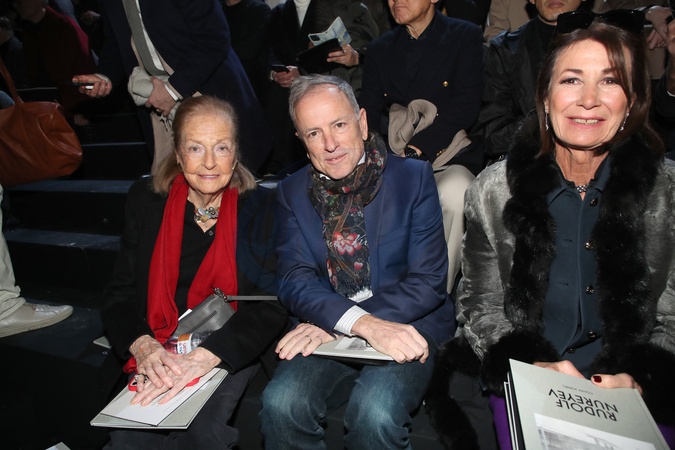 Doris Brynner, Michael Burke (Président du LVMH Fashion Group) et Valérie Breton - Défilé Dior Collection Homme Prêt-à-Porter Automne/Hiver 2024-2025 lors de la Fashion Week de Paris (PFW), à l'École Miliatire, Place Fontenoy, à Paris, France, le 19 janvier 2024. © Bertrand Rindoff/Bestimage Celebs attend the Dior Men's Fashion Show, Fall-Winter 2024/2025 Collection as part of Paris Fashion Week, France, on January 19, 2024.