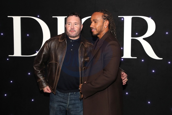 Kim Jones et Lewis Hamilton posent après le Défilé Dior Collection Homme Prêt-à-Porter Automne/Hiver 2024-2025 lors de la Fashion Week de Paris (PFW), à l'École Miliatire, Place Fontenoy, à Paris, France, le 19 janvier 2024. © Bertrand Rindoff/Bestimage Celebs attend the Dior Men's Fashion Show, Fall-Winter 2024/2025 Collection as part of Paris Fashion Week, France, on January 19, 2024.