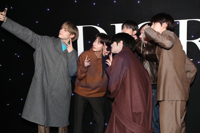 Kim Jones pose avec Soobin, HueningKai, Yeonjun, Beomgyu, Taehyun du Boys band Sud Coréen «TOMORROW X TOGETHER» après le Défilé Dior Collection Homme Prêt-à-Porter Automne/Hiver 2024-2025 lors de la Fashion Week de Paris (PFW), à l'École Miliatire, Place Fontenoy, à Paris, France, le 19 janvier 2024. © Bertrand Rindoff/Bestimage Celebs attend the Dior Men's Fashion Show, Fall-Winter 2024/2025 Collection as part of Paris Fashion Week, France, on January 19, 2024.