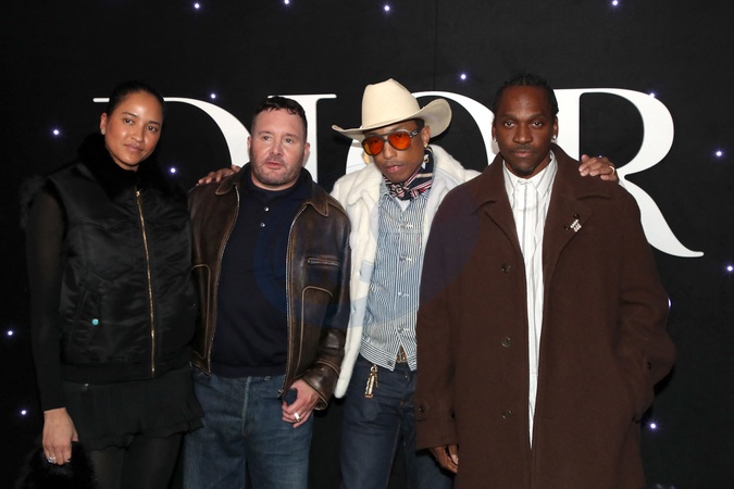 Helen Lasichanh, Kim Jones, Pharrell Williams et Pusha T posent après le défilé Dior Collection Homme Prêt-à-Porter Automne/Hiver 2024-2025 lors de la Fashion Week de Paris (PFW), à l'École Miliatire, Place Fontenoy, à Paris, France, le 19 janvier 2024. © Bertrand Rindoff/Bestimage Celebs attend the Dior Men's Fashion Show, Fall-Winter 2024/2025 Collection as part of Paris Fashion Week, France, on January 19, 2024.