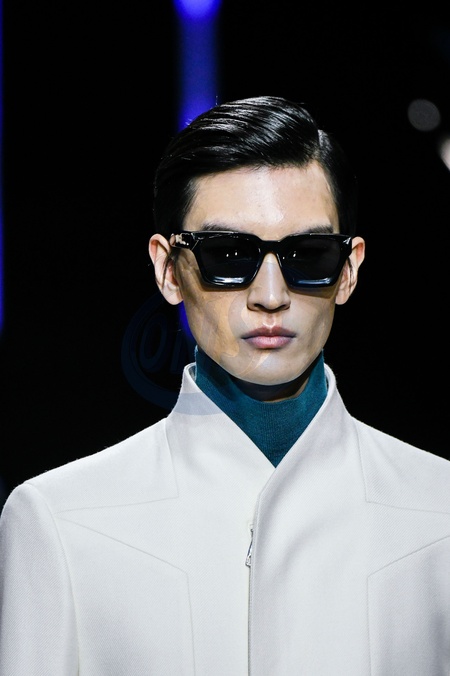 KB Hong - Models On Catwalk during Milan Fashion Week 2024 For Spring Summer Fashion Show.CloseUp, Details, Accessories, Head, Face, Eyes Men Women, Defile, Fashion Show Runway Collection, Pret A Porter, Modelwear, Modeschau Laufsteg Milano ItalyModel, Fashion, Style, Look, Fashion Show, Runway, Catwalk, Credit:www.fashionpps.com / Avalon