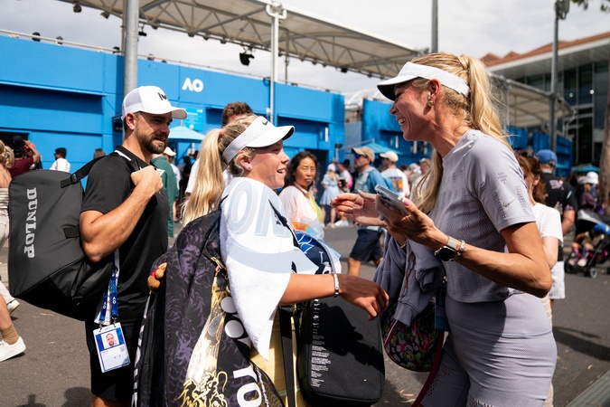 Ksenia Efremova (FRA) Pierre Debrosse (FRA) le coach Mother lors du Troisième tour de l'Open d'Australie, à Melbourne, Australie, le 20 janvier 2024. © Virginie Bouyer/Panoramic/Bestimage Round three singles match during the 2024 Australian Open at Melbourne Park in Melbourne, Australia, on January 20, 2024.