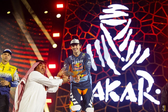 EBSTER Tobias (aut), Kini Rally Racing Team, KTM, Moto, Originals by Motul, FIM W2RC, portrait during the Final Podium of the Dakar 2024 on January 19, 2024 in Yanbu, Saudi Arabia. © DPPI/Panoramic/Bestimage