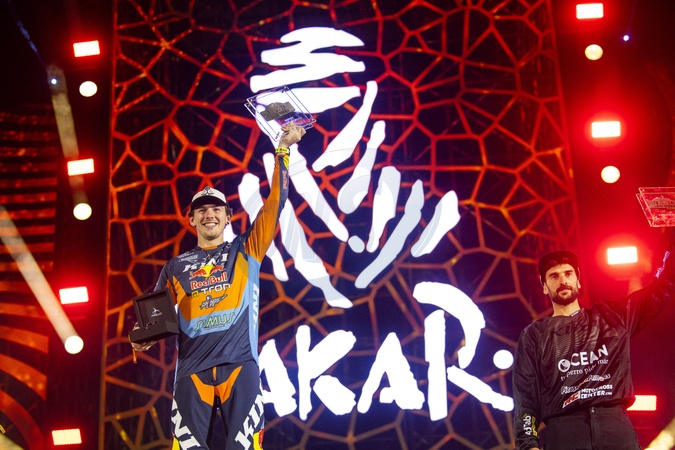 EBSTER Tobias (aut), Kini Rally Racing Team, KTM, Moto, Originals by Motul, FIM W2RC, portrait during the Final Podium of the Dakar 2024 on January 19, 2024 in Yanbu, Saudi Arabia. © DPPI/Panoramic/Bestimage