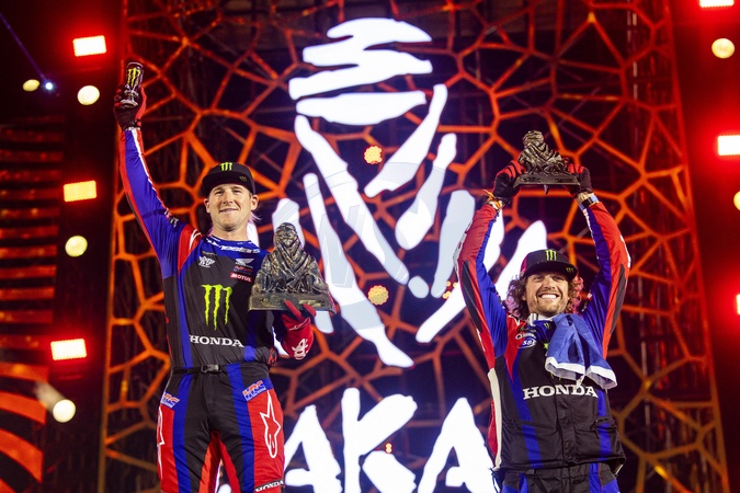 VAN BEVEREN Adrien (fra), Monster Energy Honda Team, Honda, Moto, Motul, FIM W2RC, VAN BEVEREN Adrien (fra), Monster Energy Honda Team, Honda, Moto, Motul, FIM W2RC, portrait during the Final Podium of the Dakar 2024 on January 19, 2024 in Yanbu, Saudi Arabia. © DPPI/Panoramic/Bestimage