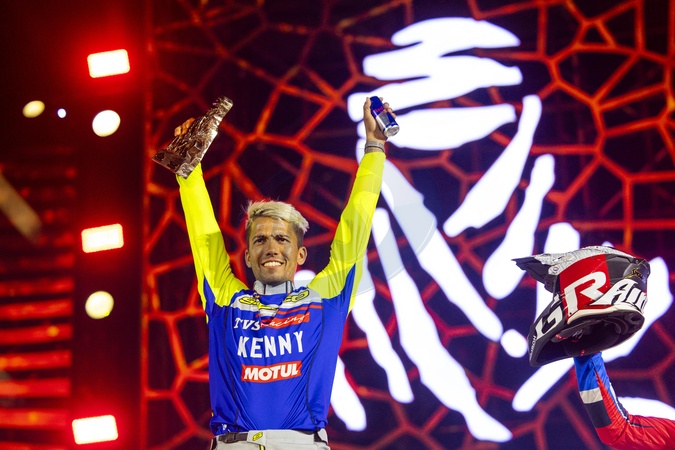 KOITHA VEETTIL Harith Noah (ind), Sherco Factory, Sherco, Motul, Moto, FIM W2RC, portrait during the Final Podium of the Dakar 2024 on January 19, 2024 in Yanbu, Saudi Arabia. © DPPI/Panoramic/Bestimage