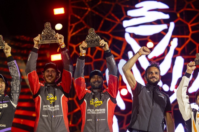 411 DE SOULTRAIT Xavier (fra), BONNET Martin (fra), Sébastien Loeb Racing - Bardahl Team, Polaris RZR Pro R, FIA SSV, portrait during the Final Podium of the Dakar 2024 on January 19, 2024 in Yanbu, Saudi Arabia. © DPPI/Panoramic/Bestimage