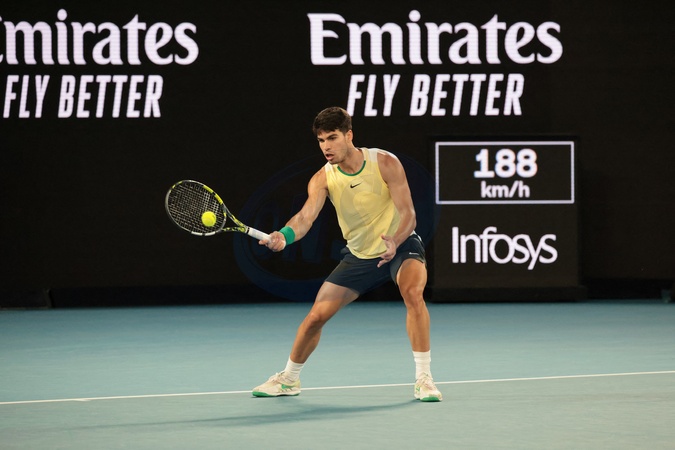 CARLOS ALCARAZ - Open de tennis d'Australie à Melbourne, le 22 janvier 2024. © Panoramic / Bestimage Australia Tennis open 2024. Melbourne. January 22nd, 2024.