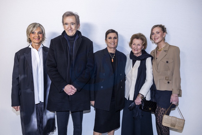 Bernard Arnault, sa femme Hélène Mercier-Arnault, la créatrice Maria Grazia Chiuri, la reine Sonja de Norvège et Leah Isadora Behn au greeting du défilé Dior Haute Couture Printemps/Été 2024 dans le cadre de la Fashion Week de Paris (PFW), au musée Rodin à Paris, France, le 22 janvier 2024. © Olivier Borde/Bestimage Greeting Dior Haute Couture Spring/Summer 2024 show as part of Paris Fashion Week in Paris, France, on January 22, 2024.