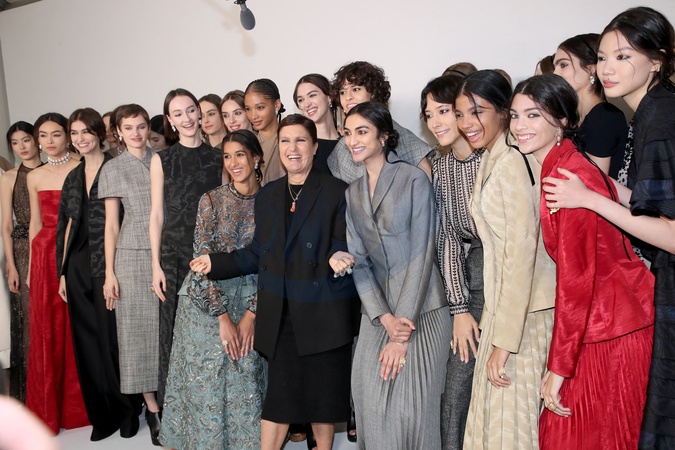 Maria Grazia Chiuri pose Backstage avec ses Models après la Défilé de Mode Christian Dior, Collection Haute Couture Printemps/Été 2024 - Greetings, dans le cadre de la Fashion Week de Paris, France, le 22 Janvier 2024. © Bertrand Rindoff / Bestimage Celebs attend the Christian Dior Haute Couture Spring/Summer 2024 show as part of Paris Fashion Week on January 22, 2024 in Paris, France.