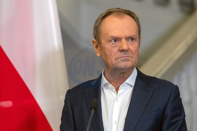 KYIV, UKRAINE - JANUARY 22, 2024 - Polish Prime Minister Donald Tusk is pictured durin a joint briefing with Ukrainian Prime Minister Denys Shmyhal, Kyiv, capital of Ukraine, Credit:Pavlo Bahmut / Avalon