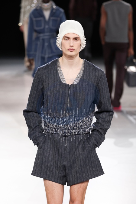 Dior Homme Model On Catwalk, Men, Paris Fashion Week 2024 Man Ready To Wear For Fall Winter, Defile, Fashion Show Runway Collection, Pret A Porter, Modelwear, Modeschau, Man, Laufsteg Herbst France catwalk fashion outlook beauty runway men parisPARMFW24, Credit:www.fashionpps.com / Avalon