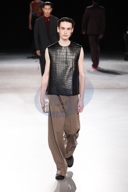 Dior Homme Model On Catwalk, Men, Paris Fashion Week 2024 Man Ready To Wear For Fall Winter, Defile, Fashion Show Runway Collection, Pret A Porter, Modelwear, Modeschau, Man, Laufsteg Herbst France catwalk fashion outlook beauty runway men parisPARMFW24, Credit:www.fashionpps.com / Avalon
