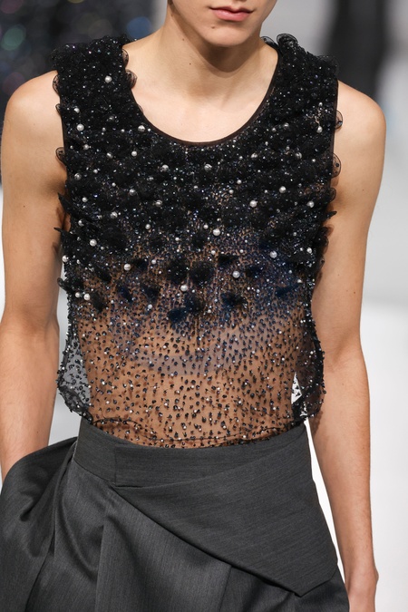 Dior Homme Model On Catwalk, Men, Paris Fashion Week 2024 Man Ready To Wear For Fall Winter, Defile, Fashion Show Runway Collection, Pret A Porter, Modelwear, Modeschau, Man, Laufsteg Herbst France closeup details asseccories catwalk fashion outlook beauty runway men parisPARMFW24, Credit:www.fashionpps.com / Avalon