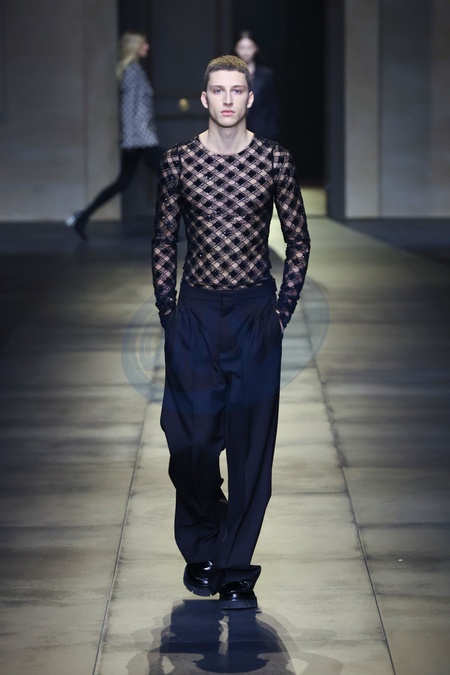 Ami Alexandre Mattiussi Model On Catwalk, Men, Paris Fashion Week 2024 Man Ready To Wear For Fall Winter, Defile, Fashion Show Runway Collection, Pret A Porter, Modelwear, Modeschau, Man, Laufsteg Herbst France catwalk fashion outlook beauty runway men parisPARMFW24, Credit:www.fashionpps.com / Avalon