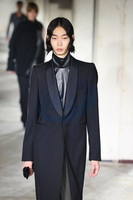 Dries Van Noten Model On Catwalk, Men, Paris Fashion Week 2024 Man Ready To Wear For Fall Winter, Defile, Fashion Show Runway Collection, Pret A Porter, Modelwear, Modeschau, Man, Laufsteg Herbst France catwalk fashion outlook beauty runway men parisPARMFW24, Credit:www.fashionpps.com / Avalon