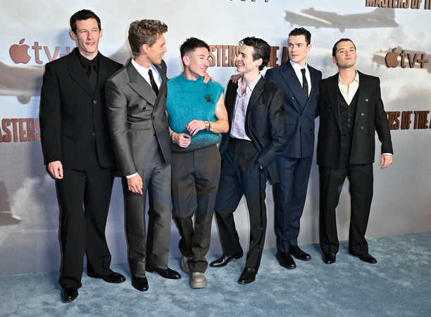 London, UK, 22 January 2024. (L to R) Callum Turner, Austin Butler, Barry Keoghan, Anthony Boyle, Nate Mann and Rafferty Law on the Red Carpet for the UK Premiere of 'Masters of the Air' at the Picturehouse Central, London, UK., Credit:Lee Floyd / Avalon