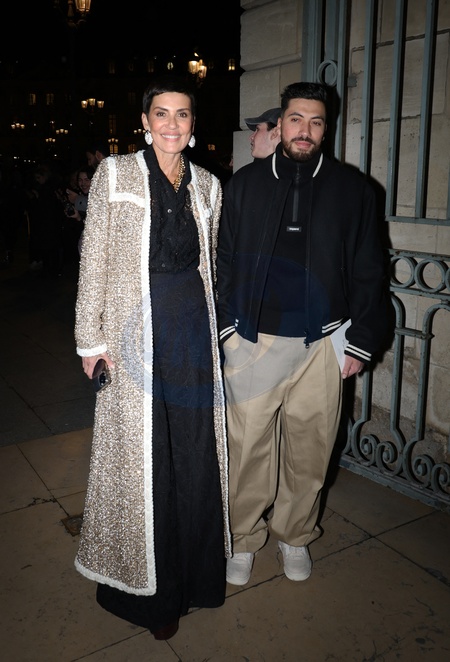 Cristina Cordula et son fils Enzo - Arrivées au défilé Giambattista Valli Haute Couture Printemps/Été 2024 dans le cadre de la Fashion Week de Paris (PFW), à l'espace Vendome, France, le 22 janvier 2024. © Denis Guignebourg/Bestimage Arrivals at the Giambattista Valli Haute Couture Spring/Summer 2024 show as part of Paris Fashion Week in Paris, France, on January 22, 2024. © Denis Guignebourg/BestImage