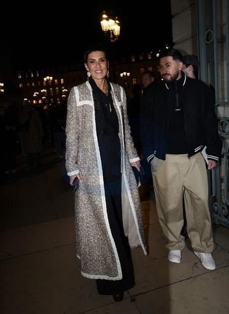 Cristina Cordula et son fils Enzo - Arrivées au défilé Giambattista Valli Haute Couture Printemps/Été 2024 dans le cadre de la Fashion Week de Paris (PFW), à l'espace Vendome, France, le 22 janvier 2024. © Denis Guignebourg/Bestimage Arrivals at the Giambattista Valli Haute Couture Spring/Summer 2024 show as part of Paris Fashion Week in Paris, France, on January 22, 2024. © Denis Guignebourg/BestImage