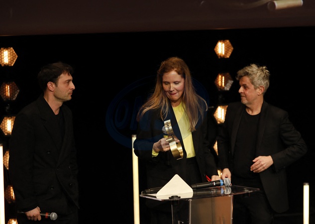 Exclusif - Arthur Harari, Justine Triet (meilleur film pour Anatomie d'une chutte) - 29ème Cérémonie des Lumières de la presse internationale au Forum des Images à Paris le 22 janvier 2024. © Coadic Guirec - Marc Ausset-Lacroix / Bestimage Exclusive - For Germany call for price - 29th International Press Lights Ceremony at the Forum des Images in Paris on January 22, 2024. No Web - Belgium and Switzerland