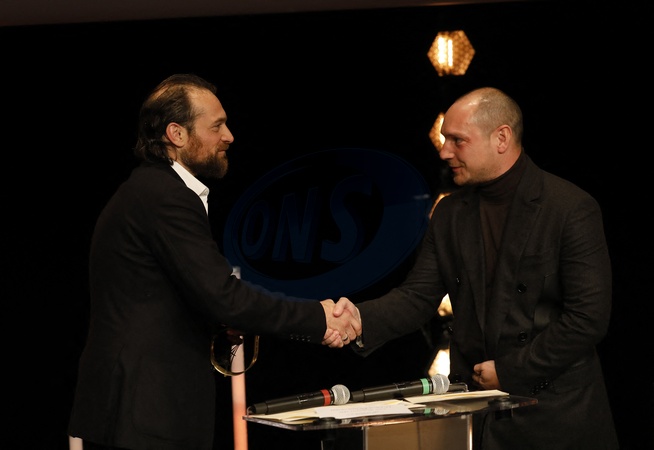 Exclusif - Arieh Worthalter (meilleur acteur pour Le procès Goldman), Alexis Manenti - 29ème Cérémonie des Lumières de la presse internationale au Forum des Images à Paris le 22 janvier 2024. © Coadic Guirec - Marc Ausset-Lacroix / Bestimage Exclusive - For Germany call for price - 29th International Press Lights Ceremony at the Forum des Images in Paris on January 22, 2024. No Web - Belgium and Switzerland