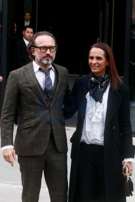 Vincent Perez et sa femme Karine Silla - Arrivées au défilé de mode Haute-Couture automne-hiver 2024/2025 "Chanel" au Grand Palais Ephémère lors de la fashion week de Paris. Le 23 janvier 2024 © Christophe Clovis / Bestimage Arrivals at the Haute-Couture fall-winter 2024/2025 "Chanel" fashion show at the Grand Palais Ephémère during the Paris fashion week. On January 23rd 2024
