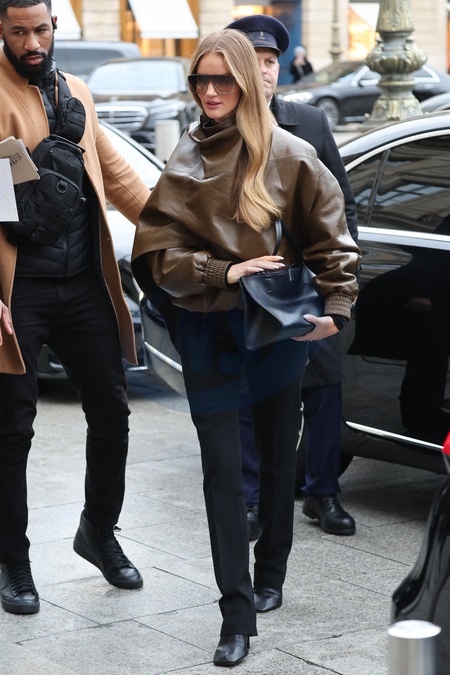 Rosie Huntington-Whiteley dans les rues parisienne lors de la Fashion Week de Paris (PFW)