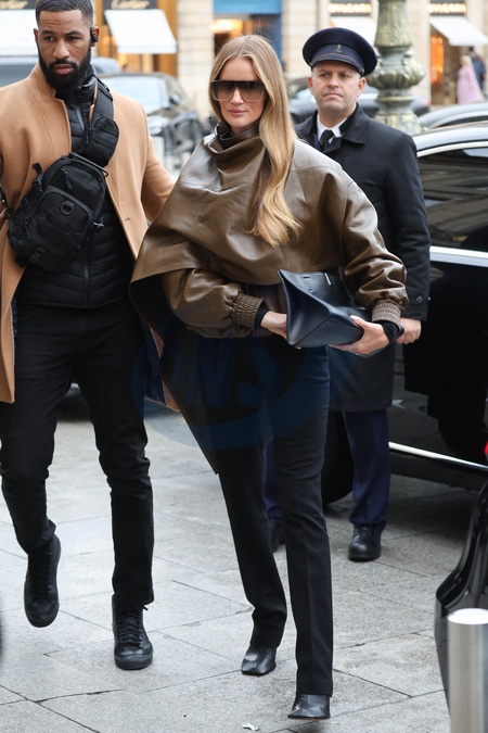 Rosie Huntington-Whiteley dans les rues parisienne lors de la Fashion Week de Paris (PFW)