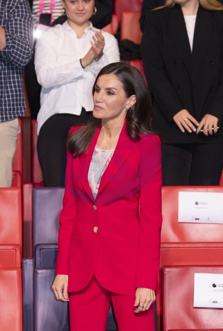 La reine Letizia d'Espagne visite le siège de la Fondation Sorigué et l'exposition "La vie en urgence" de l'artiste Juan Zamora à Lérida, le 23 janvier 2024. Queen Letizia attends the inauguration of the 'Tour del Talento 2024' organized by the Princess of Girona Foundation at Sorigue Foundation. Lerida. January 23rd, 2024.