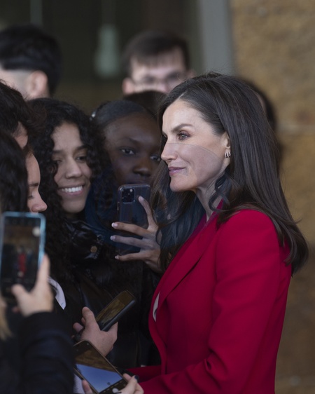 La reine Letizia d'Espagne visite le siège de la Fondation Sorigué et l'exposition "La vie en urgence" de l'artiste Juan Zamora à Lérida, le 23 janvier 2024. Queen Letizia attends the inauguration of the 'Tour del Talento 2024' organized by the Princess of Girona Foundation at Sorigue Foundation. Lerida. January 23rd, 2024.