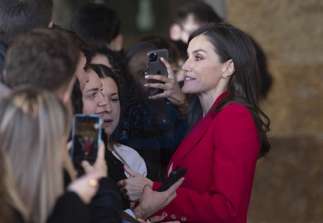 La reine Letizia d'Espagne visite le siège de la Fondation Sorigué et l'exposition "La vie en urgence" de l'artiste Juan Zamora à Lérida