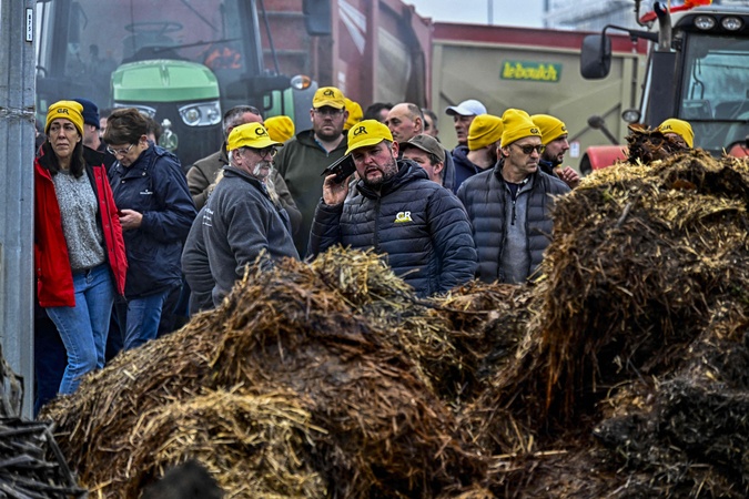 Jose Perez Co President de la CR47 - Les Agriculteurs déversent du fumier devant la Direction Départementale du Territoire à Agen, le 23 janvier 2024. © Thierry Breton / Panoramic / Bestimage Farmers dump manure in front of the Departmental Territorial Directorate in Agen, January 23, 2024.