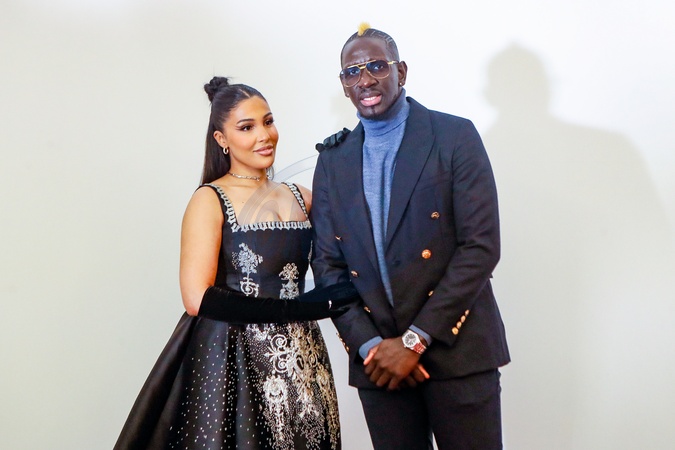 Mamadou Sakho et sa femme Majda Sakho au photocall du défilé Stéphane Rolland Haute Couture Printemps/Été 2024 dans le cadre de la Fashion Week de Paris (PFW) à la Salle Pleyel, à Paris, France, le 23 janvier 2024. © Christophe Clovis/Bestimage Stéphane Rolland Fashion Show Haute Couture Spring/Summer 2024 during Paris Fashion Week, January 23rd, 2024.