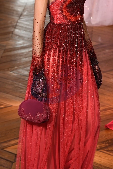 Georges Hobeika Model On Catwalk, Paris Haute Couture Fashion Week 2024 HC For Spring Summer, Defile, Fashion Show Runway Collection, Modelwear, Modeschau Laufsteg France, CloseUp, Accessories, details,PARHCS24, Credit:www.fashionpps.com / Avalon