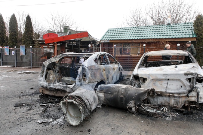 Russian missile debris near cafe in Kyiv region
