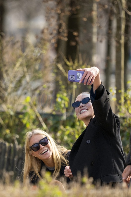 Exclusif - Prix Spécial - No web - Karlie Kloss et son fils Levi jouent au Jardin des Tuileries à Paris en compagnie de Gwyneth Paltrow en marge de la fashion week Haute Couture printemps/été 2024 (PFW) le 22 janvier 2024. Exclusive - No web en Suisse / Belgique Please pixelate child face prior to publication Karlie Kloss and her son play in the Jardin des Tuileries in Paris with Gwyneth Paltrow during the Haute Couture Spring/Summer 2024 (PFW) fashion week on January 22, 2024.