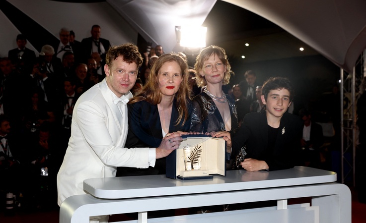 Info - "Anatomie d'une chute" de Justine Triet : cinq nominations aux Oscars dont celui du meilleur film - Milo Machado Graner, Sandra Hüller, Justine Triet, Palme d'Or 2023 pour "Anatomie d'une chute", Antoine Reinartz - Photocall des palmes lors de la 76ème édition du festival international du film de Cannes le 27 mai 2023. © Borde / Jacovides / Moreau / Bestimage The Palme D'Or winners photocall at the 76th annual Cannes film festival at Palais des Festivals on May 27, 2023 in Cannes, France.