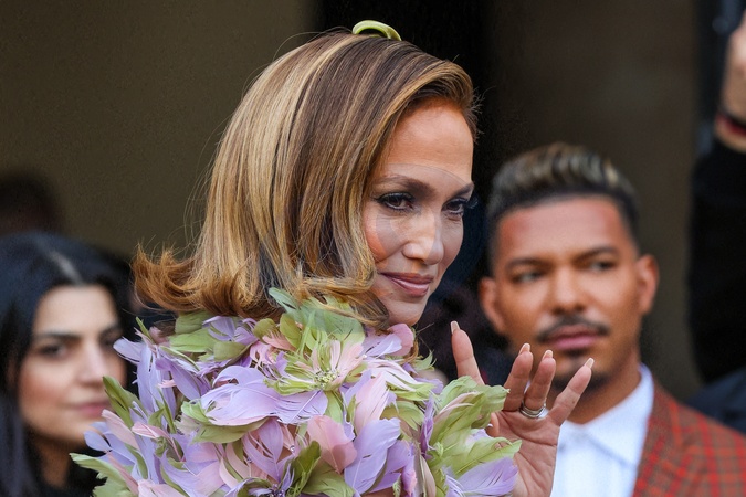 Jennifer Lopez (JLo) pojawia się na pokazie Elie Saab Haute Couture wiosna/lato 2024 w ramach Tygodnia Mody w Paryżu