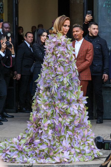 Jennifer Lopez (JLo) pojawia się na pokazie Elie Saab Haute Couture wiosna/lato 2024 w ramach Tygodnia Mody w Paryżu