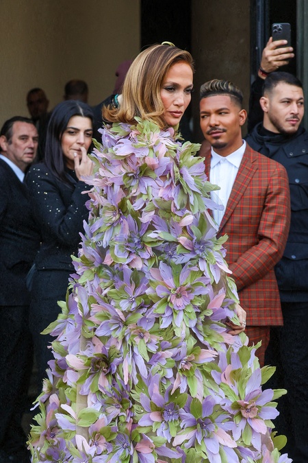 Jennifer Lopez (JLo) pojawia się na pokazie Elie Saab Haute Couture wiosna/lato 2024 w ramach Tygodnia Mody w Paryżu