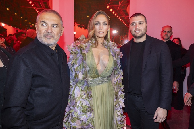 Le styliste Elie Saab, Jennifer Affleck Lopez, Elie Saab Jr - People au défilé de mode Haute-Couture automne-hiver 2024/2025 "Elie Saab" au Palais de Tokyo lors de la fashion week de Paris. le 24 janvier 2024 © Olivier Borde / Bestimage People at the Haute-Couture fall-winter 2024/2025 "Elie Saab" fashion show at the Palais de Tokyo during the Paris fashion week. On January 24th 2024