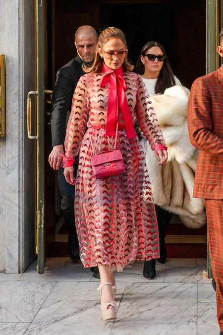 Jennifer Lopez (JLo) à la sortie du restaurant Gigi pour se rendre au défilé Valentino en marge de la Fashion Week de Paris (PFW)