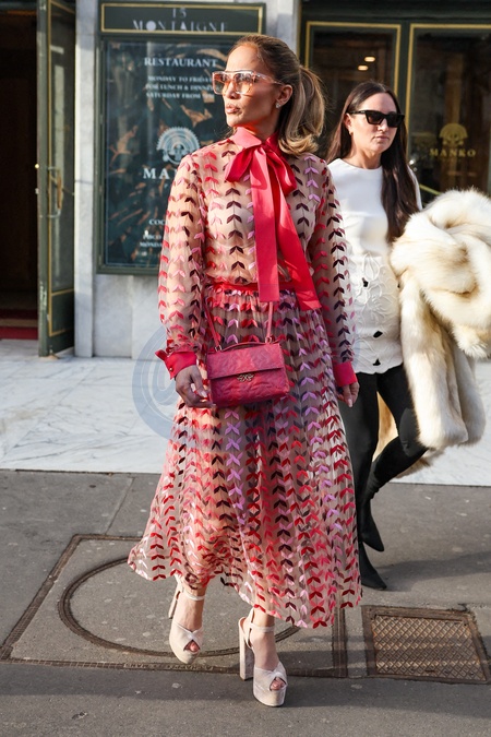 Jennifer Lopez (JLo) à la sortie du restaurant Gigi pour se rendre au défilé Valentino en marge de la Fashion Week de Paris (PFW)