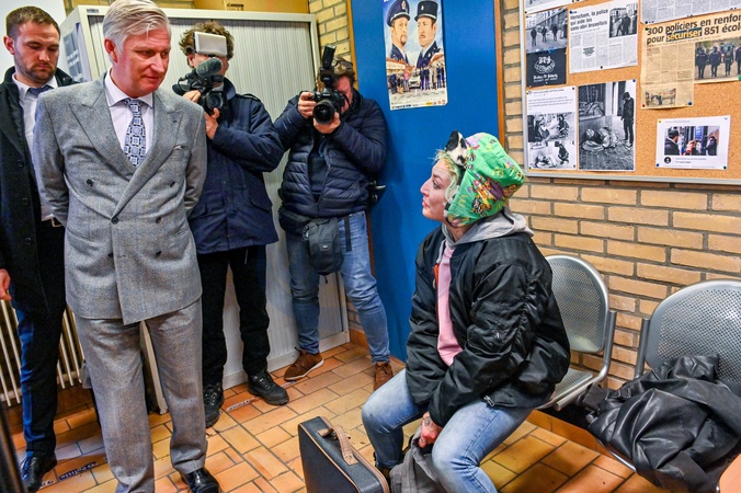 Król Belgii Filip odwiedza zespół Herscham Team ze strefy policyjnej Brukseli Capital-Ixelles, który pomaga głównie bezdomnym