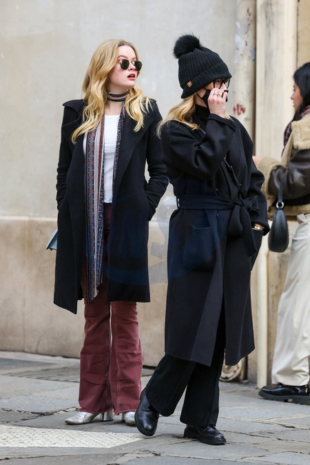 Reese Witherspoon et sa fille Ava Elizabeth Phillippe se baladent dans les rues de Paris, France, le 24 janvier 2024. Reese essaye de passer incognito avec son masque Chirurgical noir. Reese Witherspoon and his daughter Ava Elizabeth Phillippe wandered through the streets of Paris, France, January 24, 2024. Reese tries to pass incognito with her black surgical mask.
