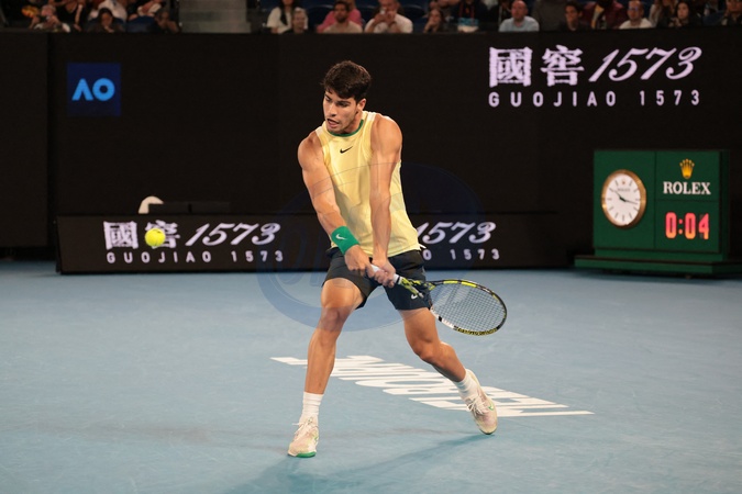 Carlos Alcaraz - C.Alcaraz battu par A.Zverev (6-1, 6-3, 6-7 [2], 6-4) à l'Open d'Australie à Melbourne, le 24 janvier 2024. Il affrontera D.Medvedev en demi-finale. © Panoramic / Bestimage C.Alcaraz beaten by A.Zverev (6-1, 6-3, 6-7 [2], 6-4) at the Australian Open in Melbourne, January 24, 2024. He will face D.Medvedev in the semi-finals -final.