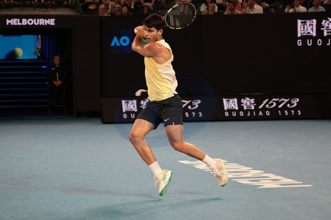 Carlos Alcaraz - C.Alcaraz battu par A.Zverev (6-1, 6-3, 6-7 [2], 6-4) à l'Open d'Australie à Melbourne, le 24 janvier 2024. Il affrontera D.Medvedev en demi-finale. © Panoramic / Bestimage C.Alcaraz beaten by A.Zverev (6-1, 6-3, 6-7 [2], 6-4) at the Australian Open in Melbourne, January 24, 2024. He will face D.Medvedev in the semi-finals -final.